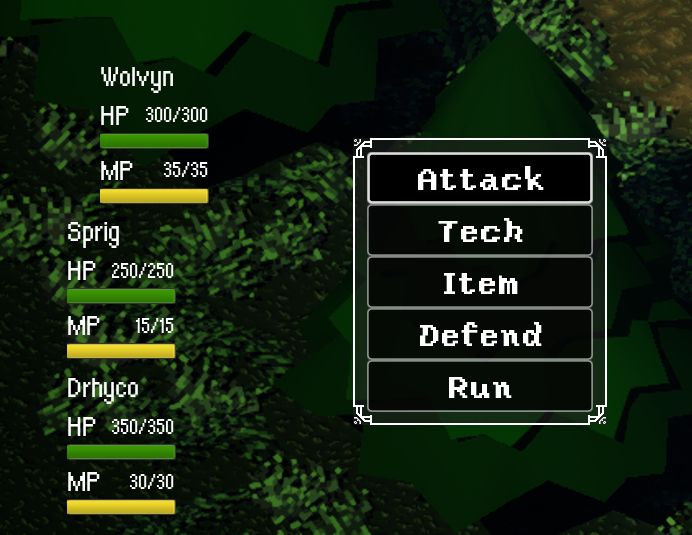 Cornucopia is a narrative-driven RPG centered around a young wolverine named Wolvyn on his quest to seek out his grandfather. Blending exploration, dialogue, and turn-based combat, Cornucopia is inspired by the classic top-down RPG genre. I designed and implemented the game’s UX/UI and core gameplay systems, focusing on creating a cohesive and readable player experience across all game states.
